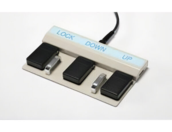 設定したい高さで停止させフットスイッチの上昇、下降とペダルを順に間を開けずに踏み込み10秒間続けると設定できます
