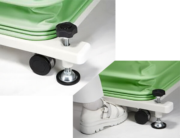 電動式で天板の高さを最下位350mmまで下げられるので被験者の負担を軽減